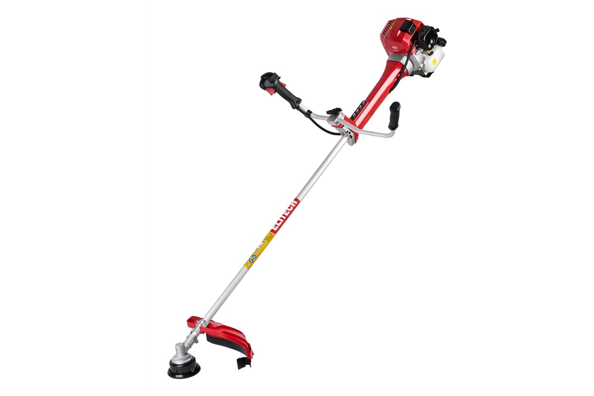 Модель комплектуются ременной оснасткой на оба плеча, триммерной головкой(кордом 420 мм) и 3-лопасным ножом (305мм), что позволяет на 30% увеличить производительность.