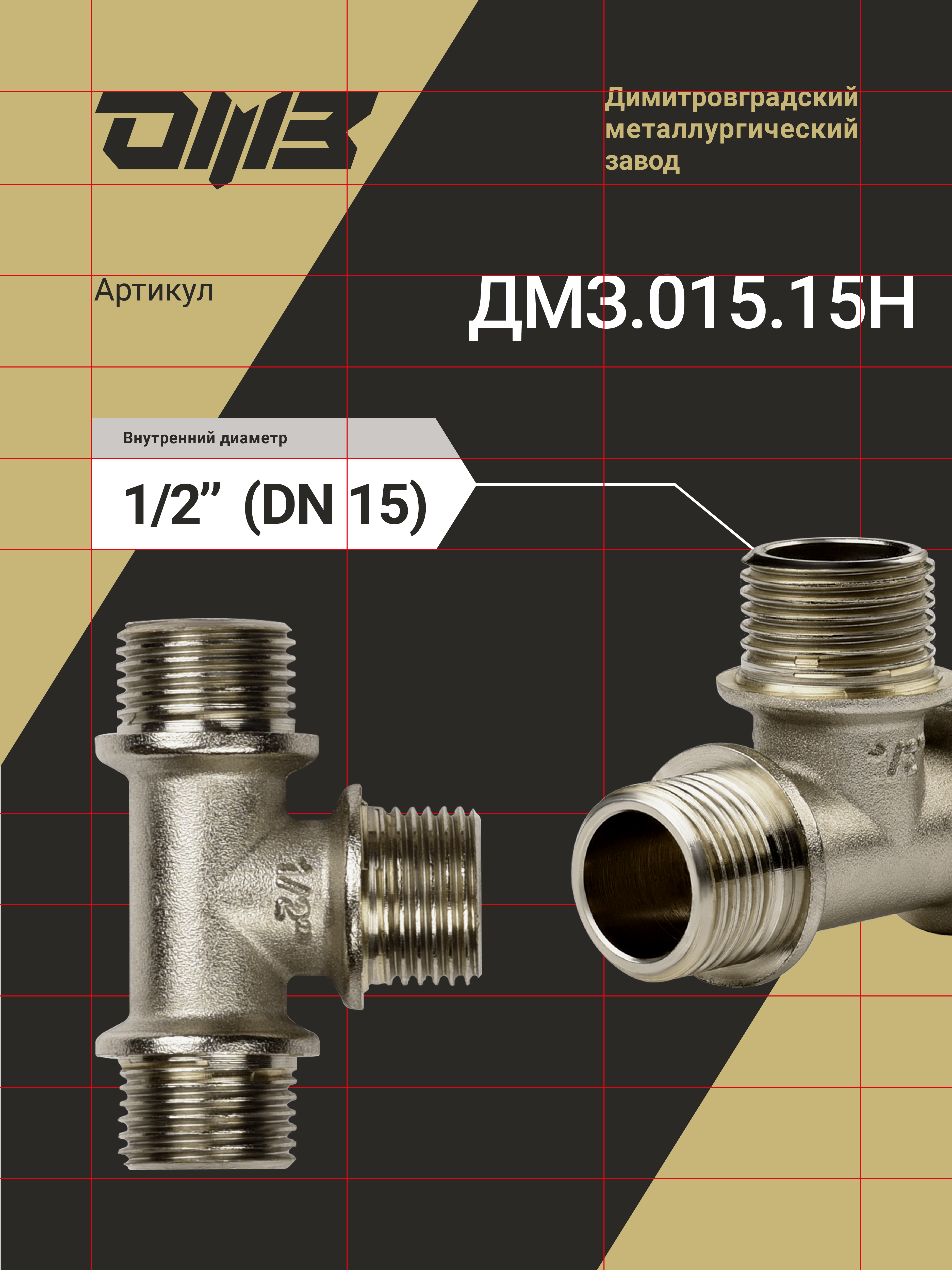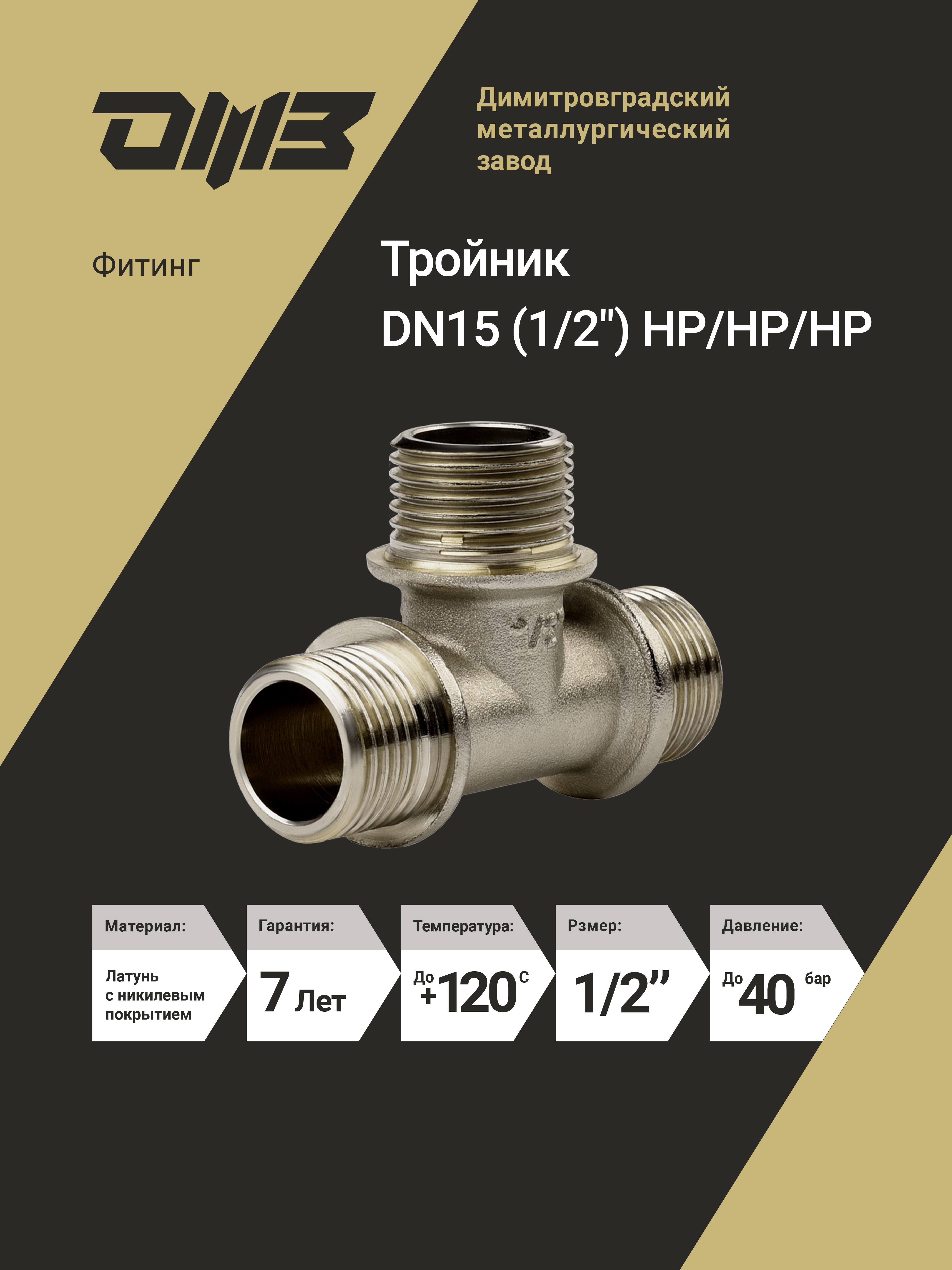 Тройник ДМЗ DN15 (1/2") НР/НР/НР латунь никель (упаковка 5 шт) ДМЗ.015.15Н5