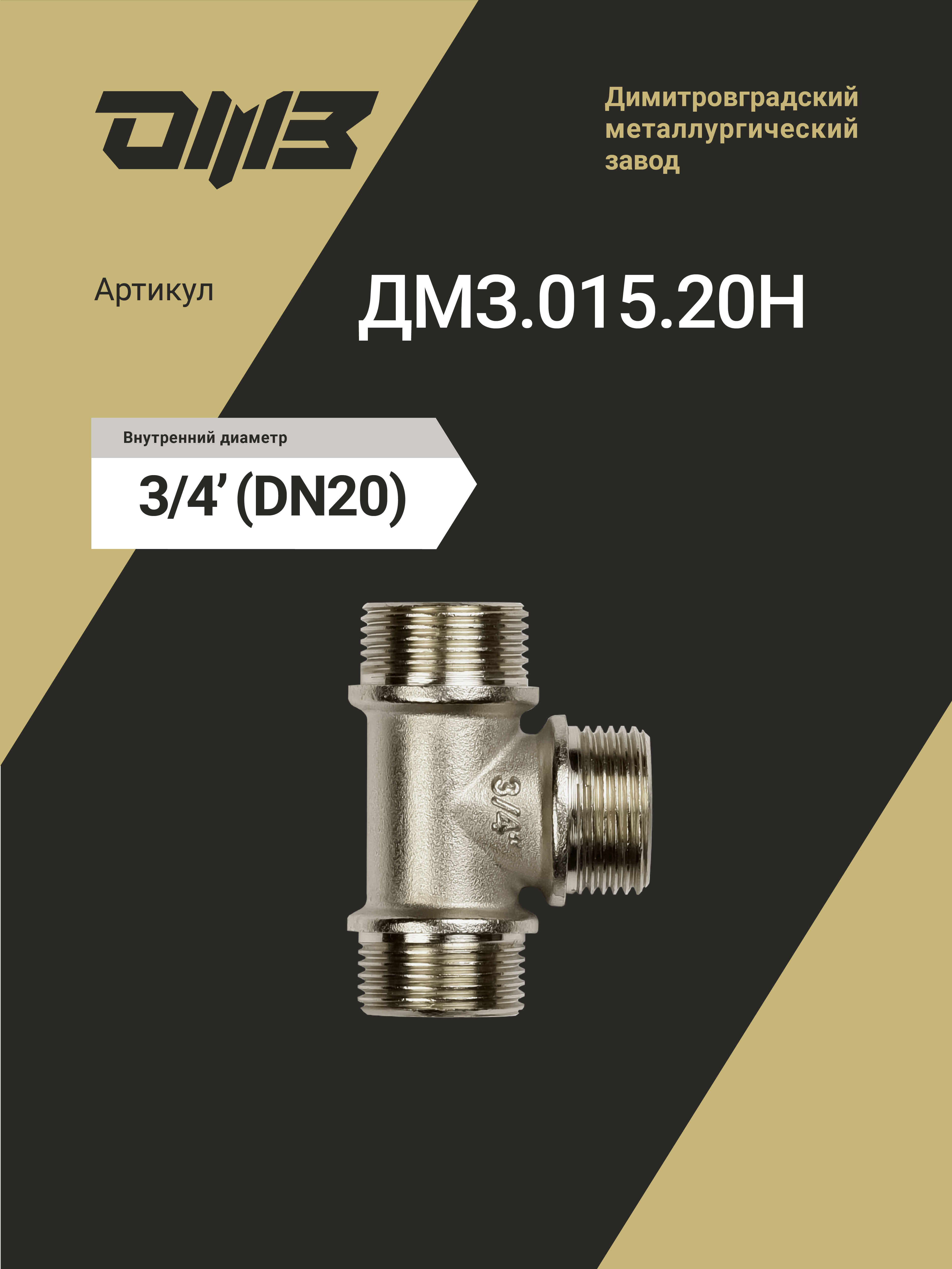 Тройник ДМЗ DN20 (3/4") НР/НР/НР латунь никель, 3 шт ДМЗ.015.20Н3