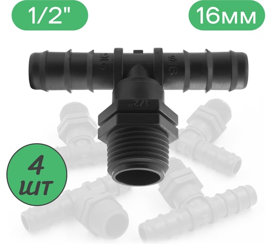 Тройник для трубки ПоливНаДаче 16мм х 1/2" нар упаковка 4 шт. TC021612.4