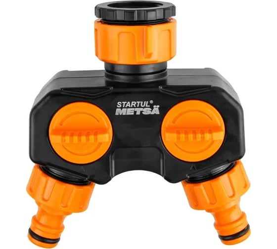 Тройник-распределитель 3/4" и 1" STARTUL Metsa (ST6013-15) для подключения поливочных шлангов к водопроводной трубе или крану с внешней резьбой 3/4" или 1". Разделяет входящий поток воды на 2 выхода с возможностью перекрытия каждого потока. Поливочные шланги соединяются при помощи муфт быстросъемных.