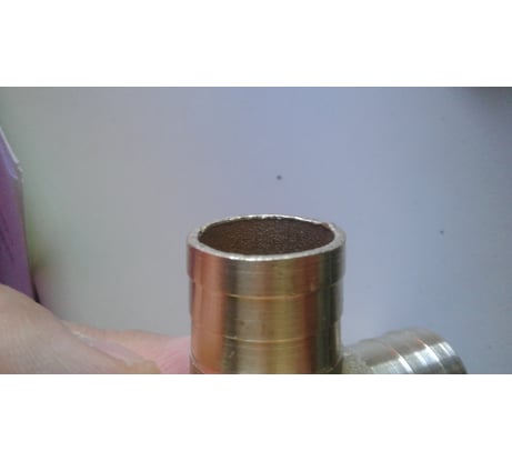 Тройник из латуни тонкостенный (хорошо-больше пропуск, плохо-если коррозия появится, то от раньше выйдет из пользования, и это более дешёвый товар нежели толстостенный). И материал для их изготовления выбран не особо хорошего качества, рельефный. Токарь делал на спех или делал токарь-ученик. Разная стенка по окружности.