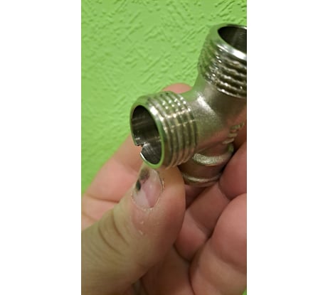 резьбы, отсутствие заусенцев, общее исполнение в норме. Но сам как игрушечный и здесь нет характеристик на него. На фото рядом с другим не для рекламы, они у меня просто были в одном заказе, там еще были грязевики и на общем фоне этот тройник выглядит очень не убедительно. На сайте производителя раб. давление указано 16, сравнивать их по массе нет смысла и нечем замерить толщину стенок, но у себя в 16ти этажке ставить наверное не рискну