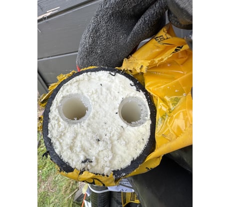 Заказала промышленно произведенную теплотрассу в расчете на качество. Качество на фото. Внутренние трубы практически у самого края, как они будут держать тепло вообще понятно. Самодельные трубы будут лучше теплоизолированы, чем это.