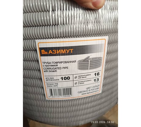 Труба гофрированная ООО Азимут d 16 ПНД серая АЗИМУТ с зондом (100м) 00000001978