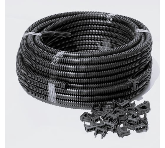 Труба гофрированная с крепежными клипсами KOPOS LPE-1 ПНД лёгкая 350 N LSHF черная с/з d16 мм (F100DK) LPE1-1216-F100DK