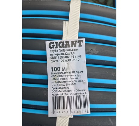 Отзывы о питьевой напорной трубе Gigant ПНД 32х3,0, SDR11 (ПЭ100, 16 атм), бухта 100 м GLPP-10