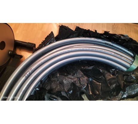 Товар пришел вовремя, упакован хорошо. Т.к. это труба pex avoh, то производитель не поленился упаковать правильно в солнцезащитную упаковку. Респект RTP. Тест слоя avoh на йод прошел на ура! Четкий, устойчивый окрас от йода. На удары, сплющивания, вытягивание тоже нареканий нет. Метраж идеальный. Вызывает только вопрос стирающаяся пальцами маркировка на трубе.