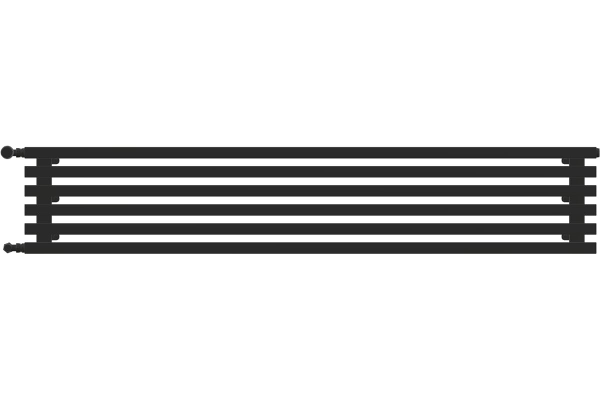 Трубчатый радиатор GUARDO RETTA с прямоугольным профилем 60x30 6P 280 мм высотой, 1200 мм шириной, 6 секций, нижнее левое подключение, черный матовый 6P-1200-06 NK-GOR-L R9005(M)