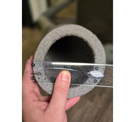 Не соответствует маркировке и указанным параметрам. Внутренний диаметр 85 мм вместо заявленных 89, толщина утеплителя 16 мм вместо 20 мм. Итого общий диаметр 115 мм вместо 129 мм.