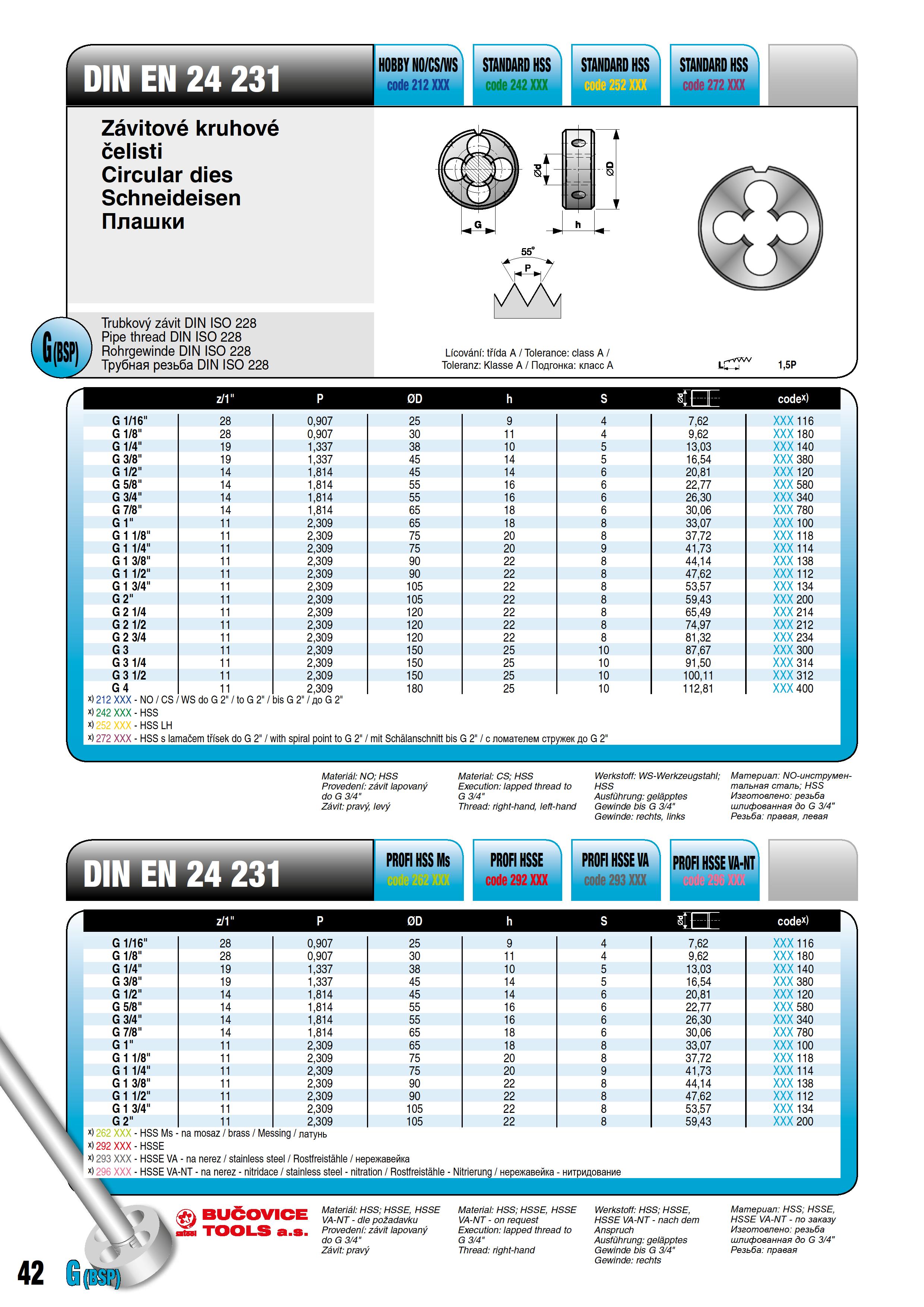 Трубная плашка Bucovice Tools левая G 1/2" -14 HSS 45x14мм 252120