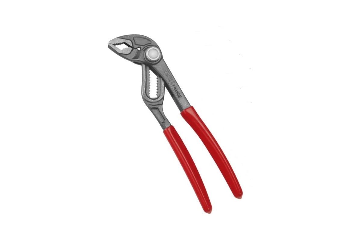 Трубные клещи, L=180mm VIRAX 18222 - практичный инструмент с 18-ю положениями регулировки ширины раскрытия щек. Широкие ручки с противоскользящим покрытием обеспечивают комфорт в работе и минимум прикладываемых усилий в момент захвата трубы. Изделие выполнено из хром-ванадиевой стали, что гарантирует прочность и долгий срок службы.
