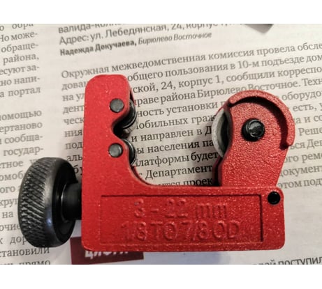 Недорогой , малогабаритный труборез . Хорошо подходит для резки трубок из цветных металлов . Рез ровный . Благодаря хорошему ролику не рез происходит относительно быстро.
