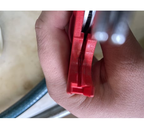 Цена, но оно того стоит, работу упрощает в разы. Тяжеловато идет рез армированных труб и шлангов.