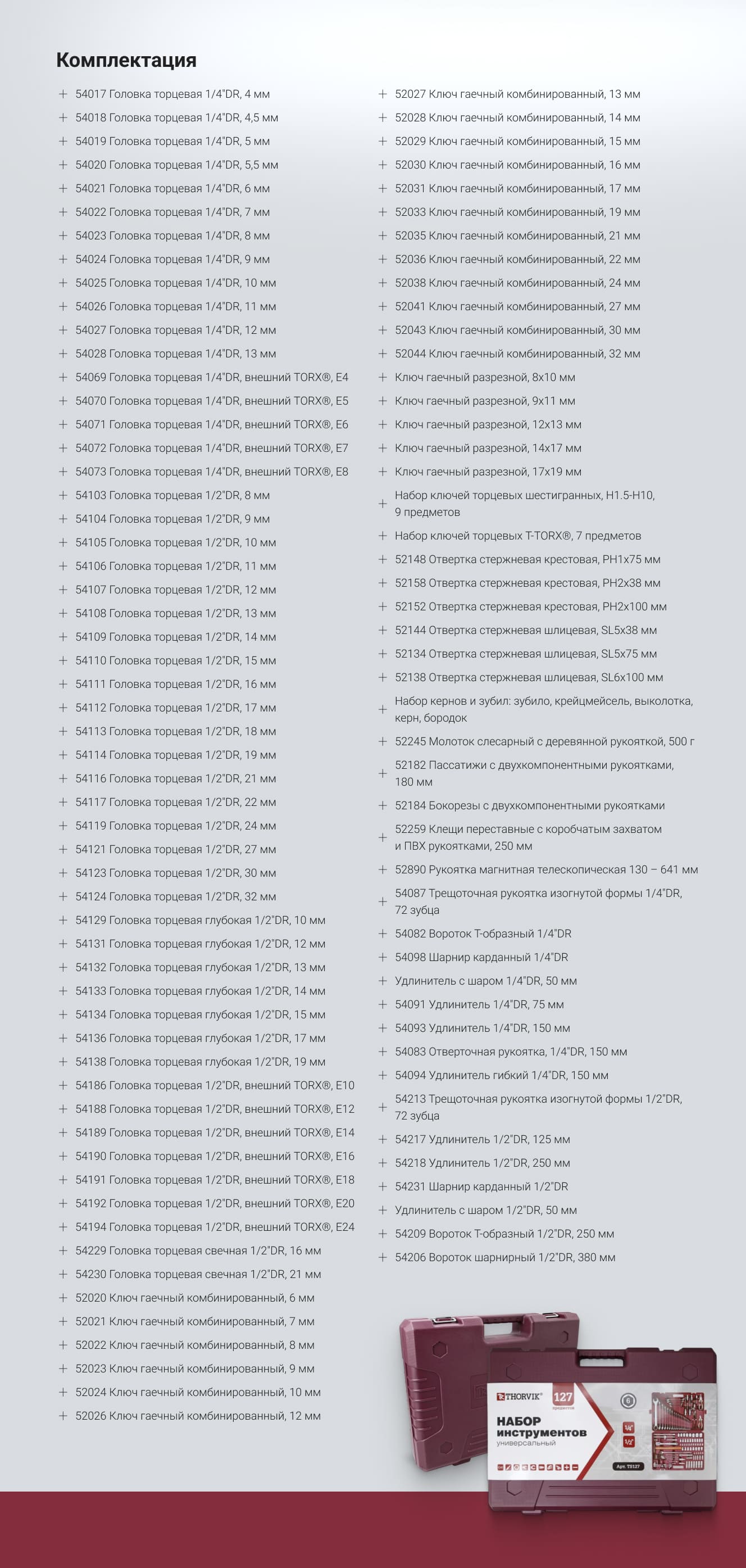 Технические характеристики набора инструмента THORVIK 54014