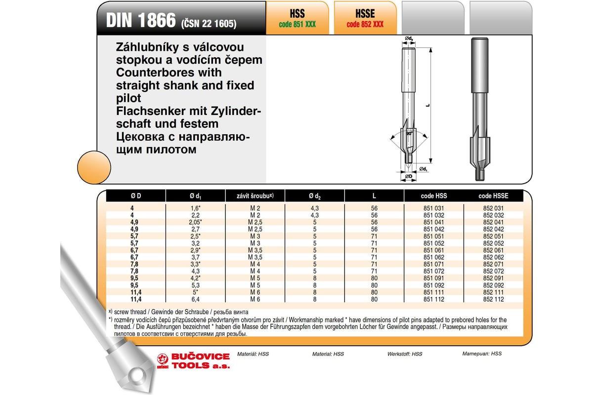 Вопросы и ответы о цековке Bucovice Tools 5.7х71 мм; 90 гр.; М3; HSS 851051