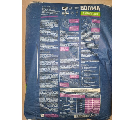 Волма Штукатурка цементная Аквапласт 25 кг 30001662 предназначена для ручного выравнивания стен снаружи и внутри зданий, в том числе в помещениях с повышенной относительной влажностью, для подготовки поверхности стен под облицовку плиткой: в кухнях, душевых комнатах, саунах, под нанесение декоративных штукатурок. Не рекомендуется применять для выравнивания и ремонта полов.