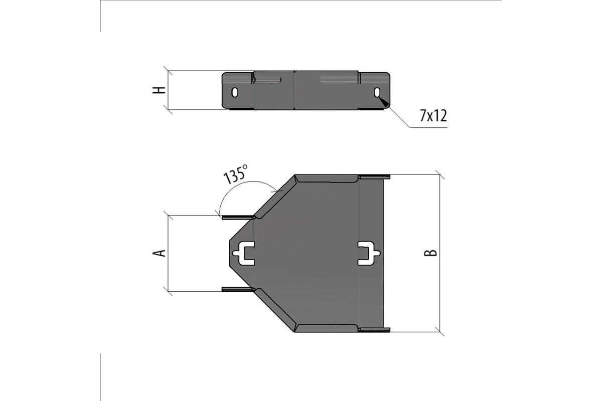 Центральный переходник серии "PLUS" широко применяется для соединения между собой секций листовых лотков различной ширины. Такая модификация изделия позволяет перейти с металлического лотка шириной 300 мм на лоток шириной 400 мм.