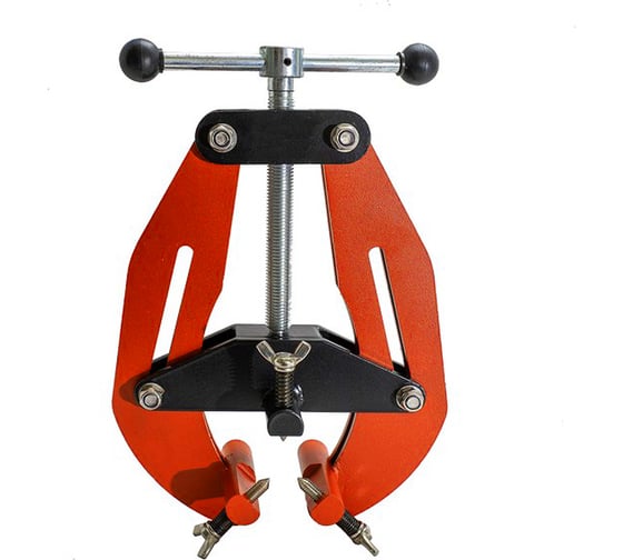 Представляет собой конструкцию из прочной раздвижной стальной рамы с двумя регулировочными винтами и верхней прижимной пластины с третьим регулировочным винтом. Прижимная пластина может подниматься и опускаться с помощью винтовой передачи, позволяя подстраиваться под трубы разного диаметра. При подъеме пластины рама центратора также расширяется, чтобы все три регулировочных винта равномерно зажимали трубу.