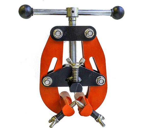 Представляет собой конструкцию из прочной раздвижной стальной рамы с двумя регулировочными винтами и верхней прижимной пластины с третьим регулировочным винтом. Прижимная пластина может подниматься и опускаться с помощью винтовой передачи, позволяя подстраиваться под трубы разного диаметра. При подъеме пластины рама центратора также расширяется, чтобы все три регулировочных винта равномерно зажимали трубу.