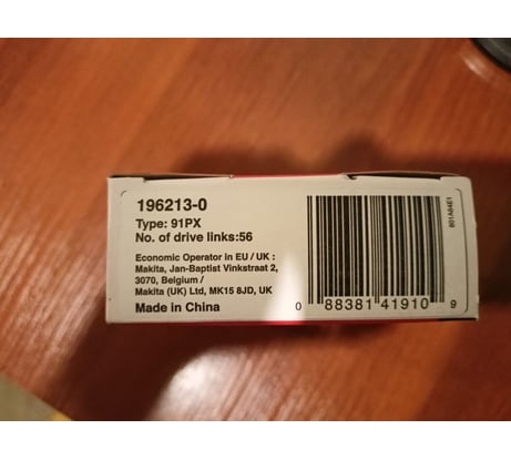 На упаковке (картонная коробка "макита") нет маркировки, не понятно какой размер цепи, шаг, и количество звеньев Внутри открытый пакет с цепью, б/у или новая не понятно.... В упаковке "макита" лежала цепь бренда "орегон" Ранее покупал "орегон", цепь супер была, жаль сейчас ее нет в продаже, но эту неизвестность брать отказался Странно...сделал отказ, заказал другой бренд
