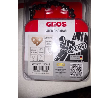 Цена соответствует качеству. Заточку держит отлично. Точить можно 3- 4 раза. Вибрация отсутствует. Не тянится как дешевые цепи. Отличный бренд GEOS.