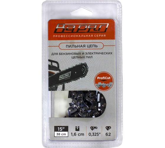 Цепь пильная FULL CHISEL 0.325, 1.6 мм, 62 звеньев, блистер, ПРОФИ ВАРЯГ 014513