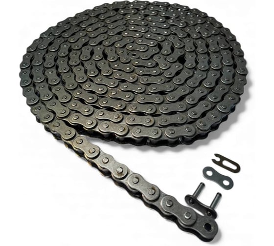 Технические характеристики: Тип: 200-1 (роликовая, однорядная) Шаг: 63,50 мм Диаметр ролика: 39,37 мм Внутренняя ширина: 38,10 мм Длина цепи: 5,023 м (79 звеньев)