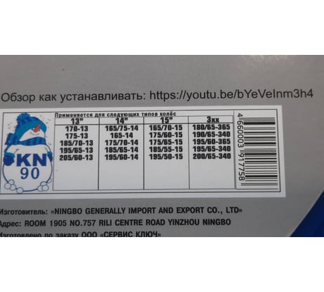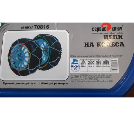Технические характеристики цепей на колеса Сервис Ключ 70816