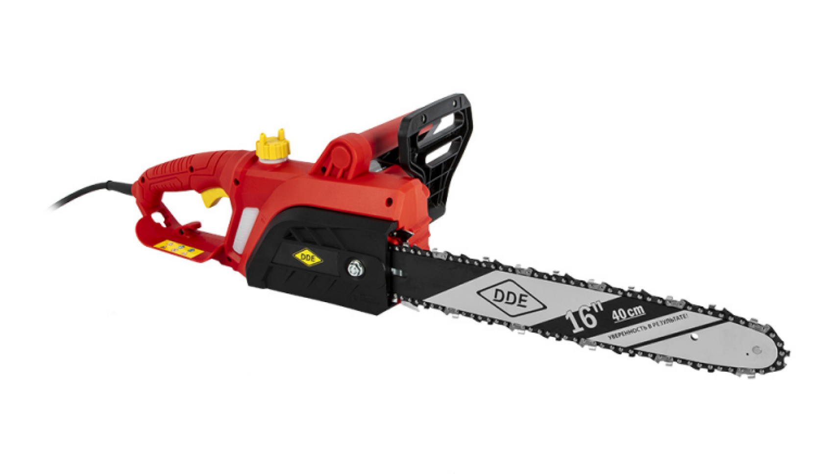 - Защита от случайного пуска Электрический тормоз блокирует движение цепи, пока вы не нажмете на кнопку включения