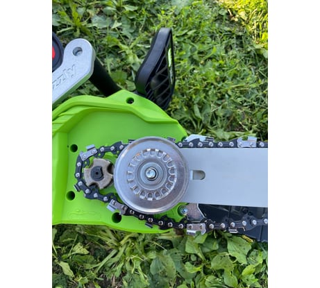 Забрал долгожданную! Пишу отзыв о первом осмотре, дальше дополню о процессе работы. Устал брать у знакомых бензопилу и мучаться с ней-то свеча, то карбюратор, то дергать ее бесконечно…итак, к сути! На первый взгляд все надежно-хороший пластик, крепкий…ручка с железным основанием, прорезинена. Проверил там же на пункте выдачи-пуск плавный, но за мгновение набираются большие обороты. После отпускания ручки оборотов происходит мгновенная остановка шины, а двигатель продолжает плавно останавливаться-очень важный момент касаемо безопасности!!! Насторожила ручка регулировки натяжения цепи- выполнена из пластика, будет контактировать с металлическим венцом. Вопрос долговечности. Надеюсь все будет хорошо. Объективно короткий шнур питания. Около 20 см. Но это общая проблема. У всех пил этого ценового сигмента и исполнения они одинаковые. Это не самое важное. Объявлена гарантия в 2 года, на нее не уповаю, думаю прослужит дольше, т.к. куплена не для профессиональных нужд и не для промышленных масштабов).