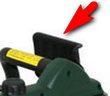 - Фиксатор удлинителя в задней части рукоятки препятствует отсоединению розетки от вилки бензопилы во время работы;