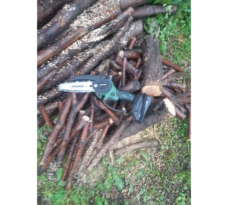 Работает, пилить надо не торопясь, максимум до 10см ветки. Для сада пойдёт, мелочь пилить, но не более. Планировал брать её на рыбалку по дрова, походу смысла нет, быстро садится батарея, правда это заводской заряд, сам ещё не заряжал. Пилил сухие ветки дуба на фото сколько хватило аккума