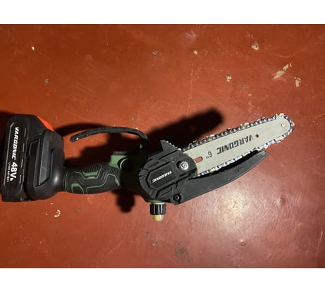 Цепь длиной 6 дюймов, состоящая из 43 звеньев, обеспечивает аккуратное резание веток, кустов или небольших деревьев. Инструмент оснащен мощным двигателем с максимальной скоростью вращения до 10 000 оборотов в минуту, что гарантирует эффективную работу даже с твердыми породами древесины. Щеточный мотор повышает долговечность устройства и снижает необходимость технического обслуживания.