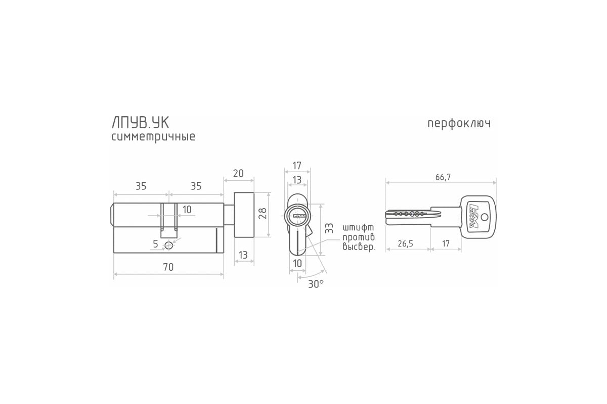 Технические характеристики цилиндрового механизма НОРА-М 35-35 латунь Х