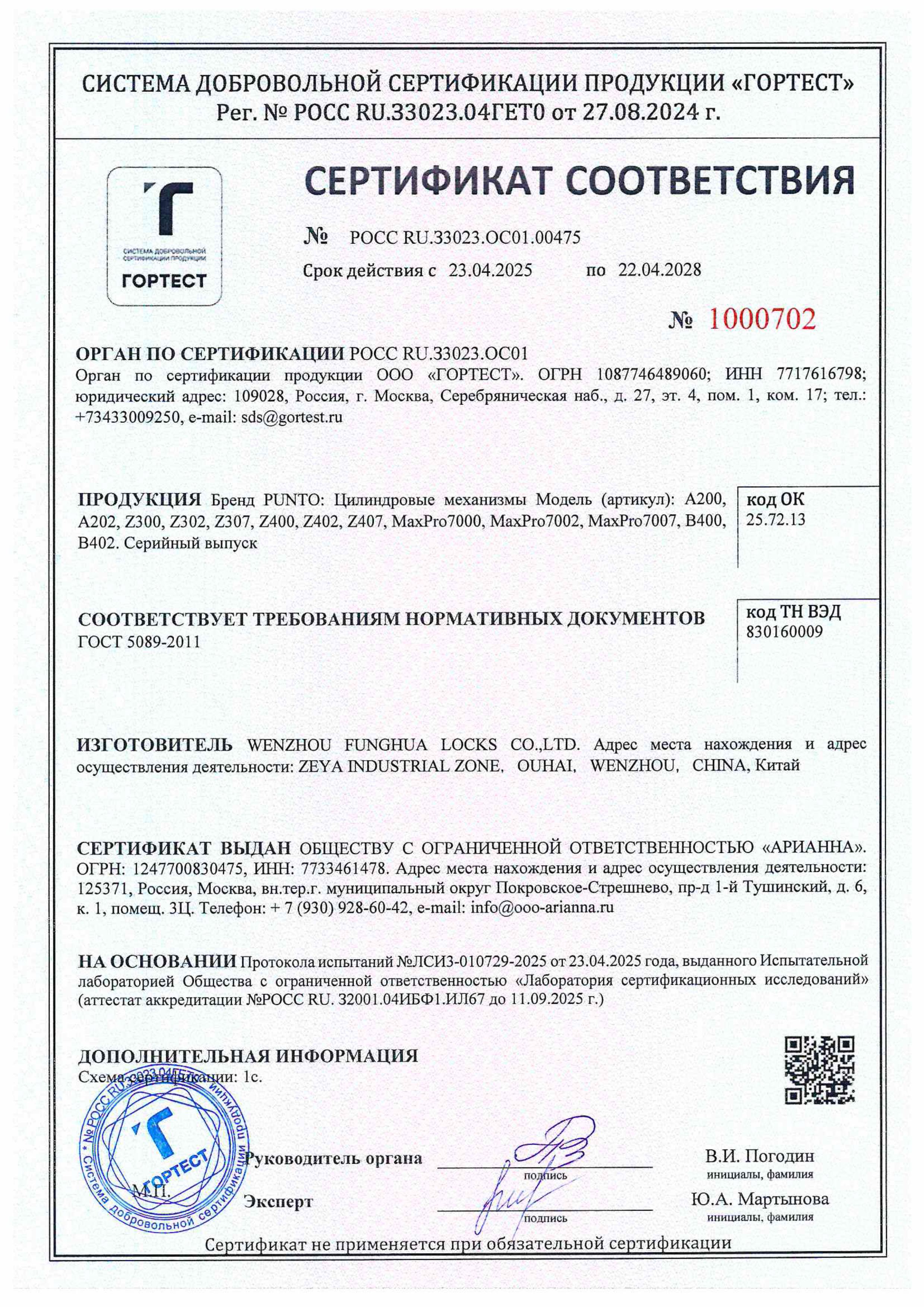 Гарантия производителя 1 год
