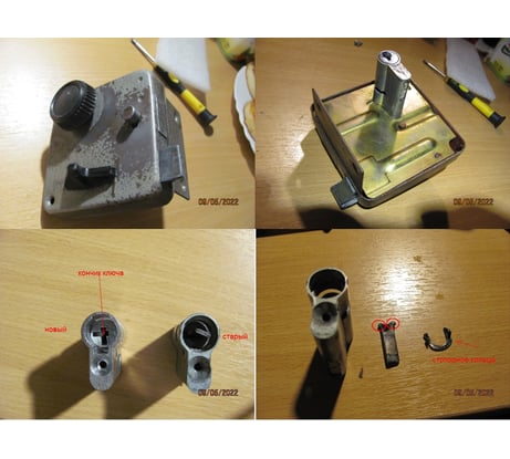 Новый замок уже врезать некуда,решил этот починить. На вид обе личины одинаковые,только новая без планки.Сняв стопорное кольцо,можно ее снять и переставить.Но. Если вставить ключ - его кончик выталкивает планку из паза и цилиндр вращается вхолостую.Вырезал новую. Подлиннее,чтобы в противоположную стенку упиралась и с пазом.Работает,но думаю надо будет переделать получше.