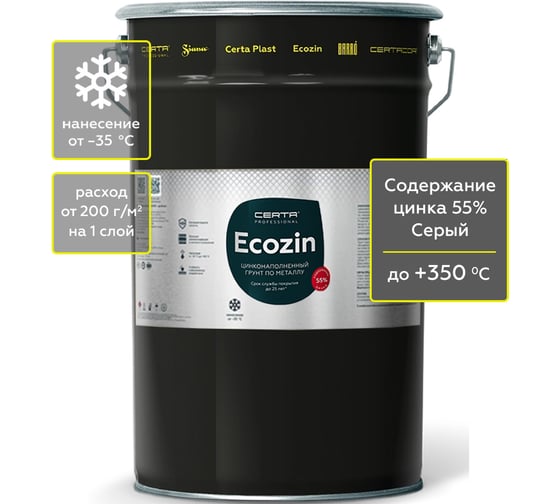 Цинконаполненный грунт по металлу Certa ECOZIN А 55, серый (10,0кг) ECA002