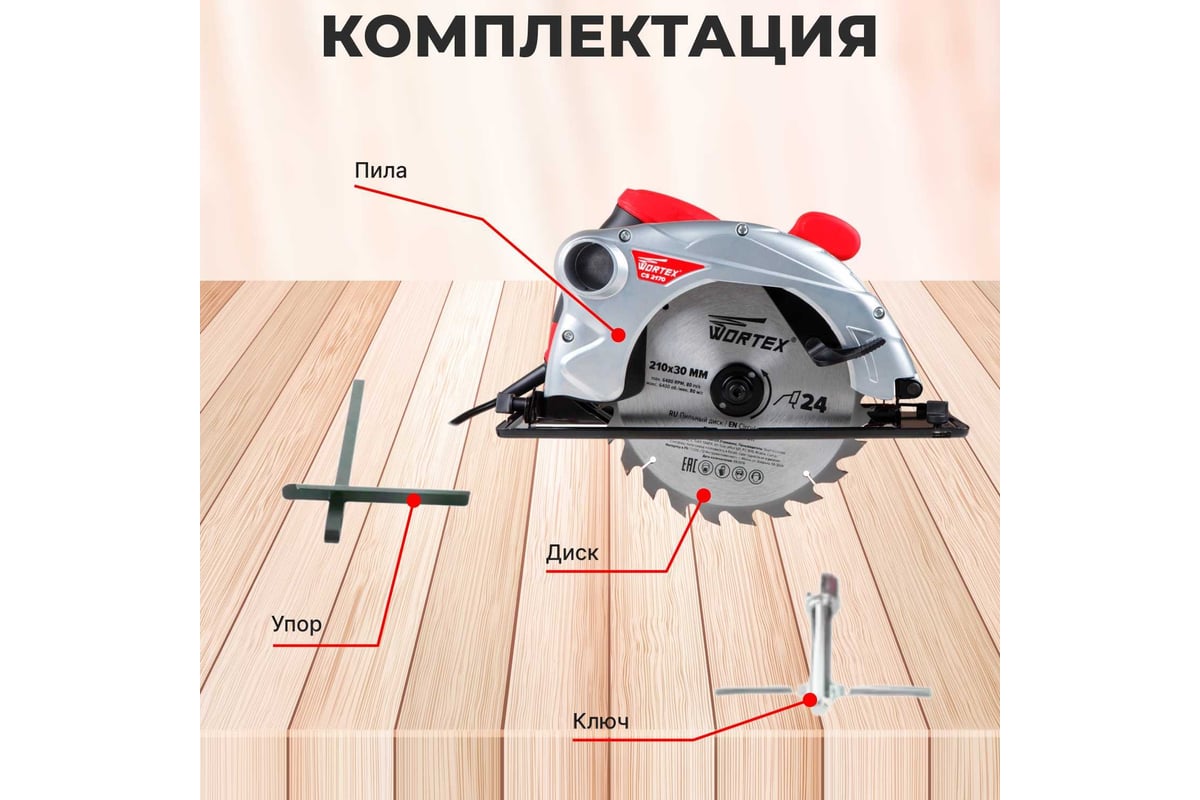 Циркулярная пила WORTEX CS 2170 CS217000011 подойдет для глубоких пропилов деревянных заготовок.