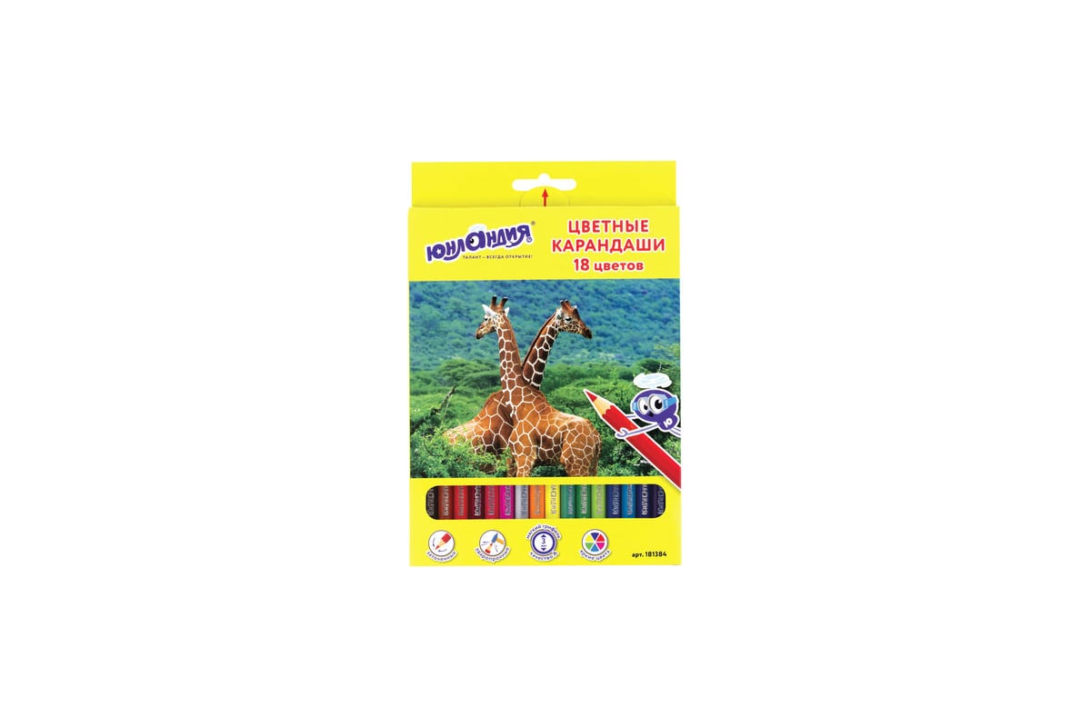 Цветные карандаши ЮНЛАНДИЯ МИР ЖИВОТНЫХ, 18 цветов, заточенные 181384