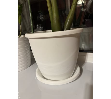 Горшки из прочного пластика, дренажные отверстия для слива лишней жидкости, поддон в комплекте, цвет белый матовый, форма к низу зауженная, смотрятся эстетично.