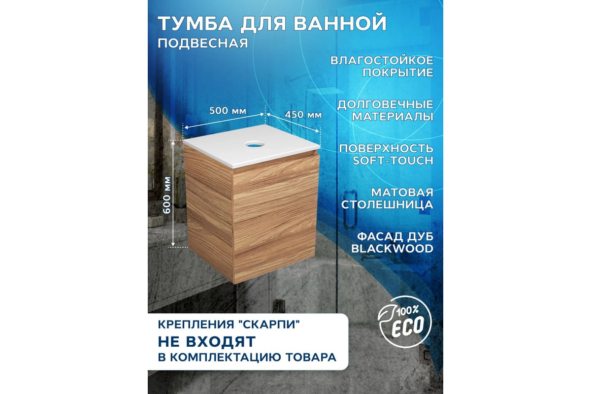 Тумба Bauedge Bau Dream Blackwood 50 с дверцей, раковина BAU Dream D43, смеситель для раковины высокий Hotel Black, черный SD3068