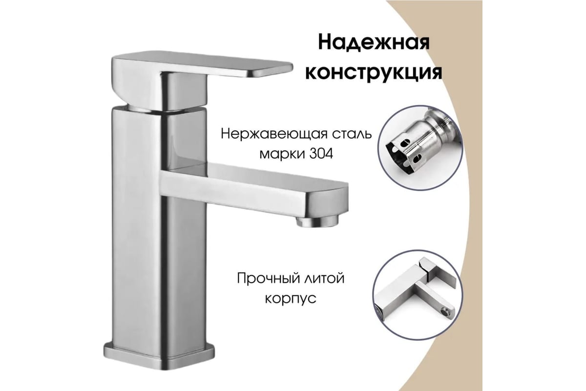 Тумба Bauedge Bau Dream Blackwood 60 правая, раковина BAU Cerama Mini 33х28 белая, смеситель Hotel Still, нерж. сталь SD3382