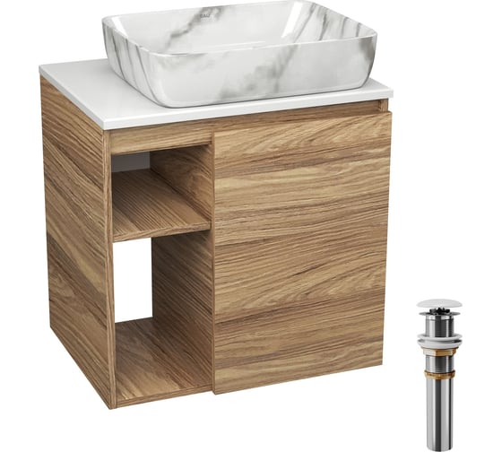 Тумба Bauedge Bau Dream Blackwood 60 правая, раковина BAU Hotel 51х39, мрамор, выпуск клик клак, белый SD3263