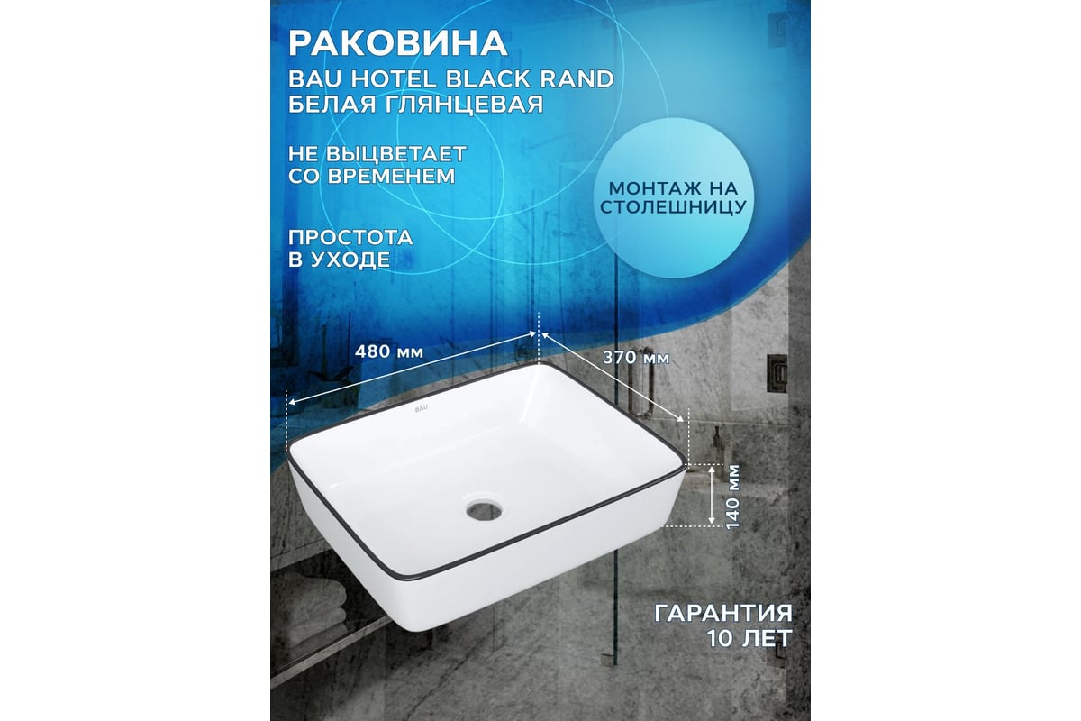 Тумба Bauedge Bau Dream Blackwood 60 правая, раковина BAU Hotel Black Rand 48х37, смеситель для раковины высокий Hotel Still, нержавеющая сталь SD3248