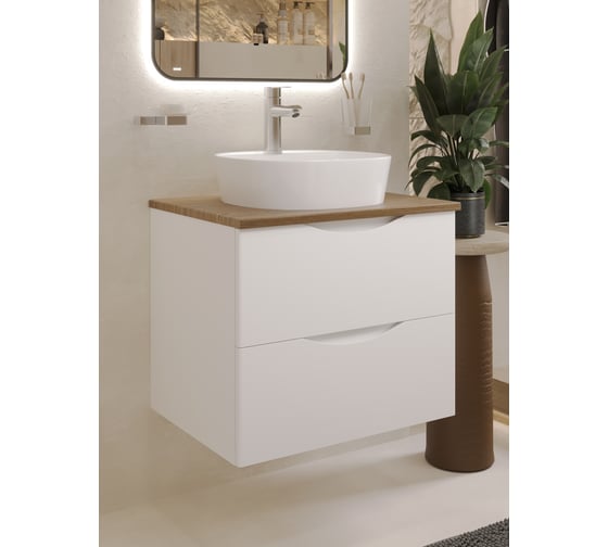 Тумба с раковиной для ванной подвесная белая матовая со столешницей под дерево 61 см BOND T99605-S01410 - стильное и функциональное решение для вашей ванной комнаты.