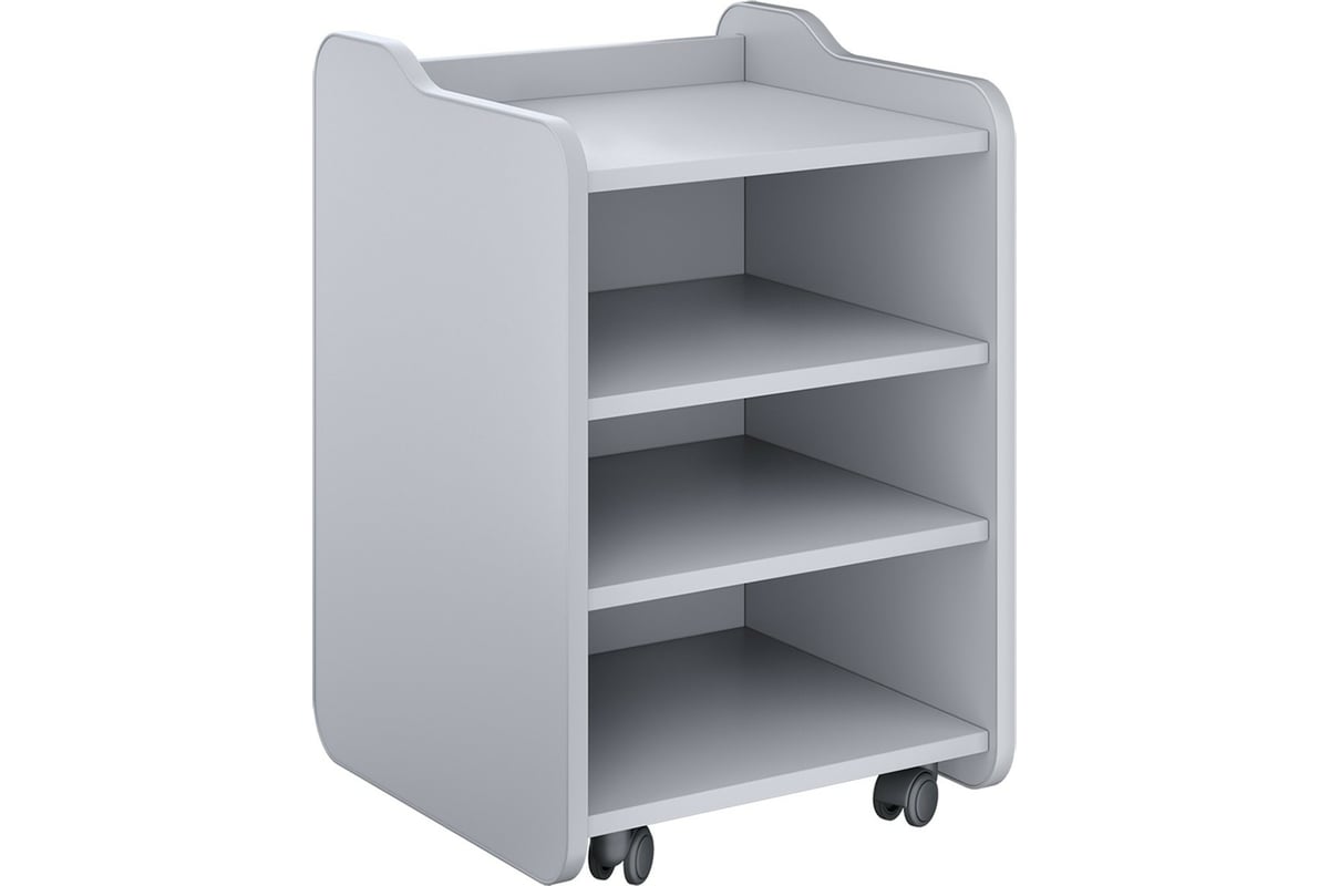 Тумба оборудована двумя полками, которые создают три ниши для хранения вещей. Полки можно отрегулировать на комфортную высоту, в зависимости от ваших потребностей. Бортики по краям верхней полки предотвращают падение вещей. Скругленные углы защищают от травм, а стены – от повреждений.