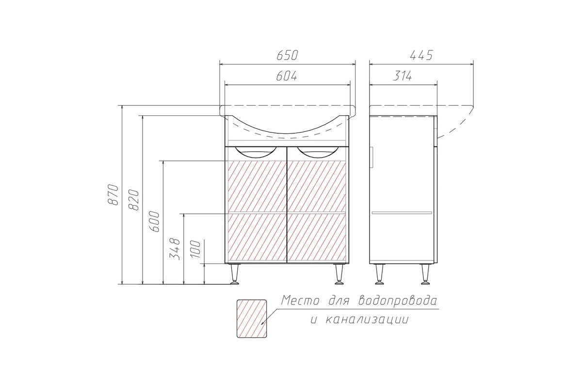 Внимание! Умывальник в комплект поставки не входит.