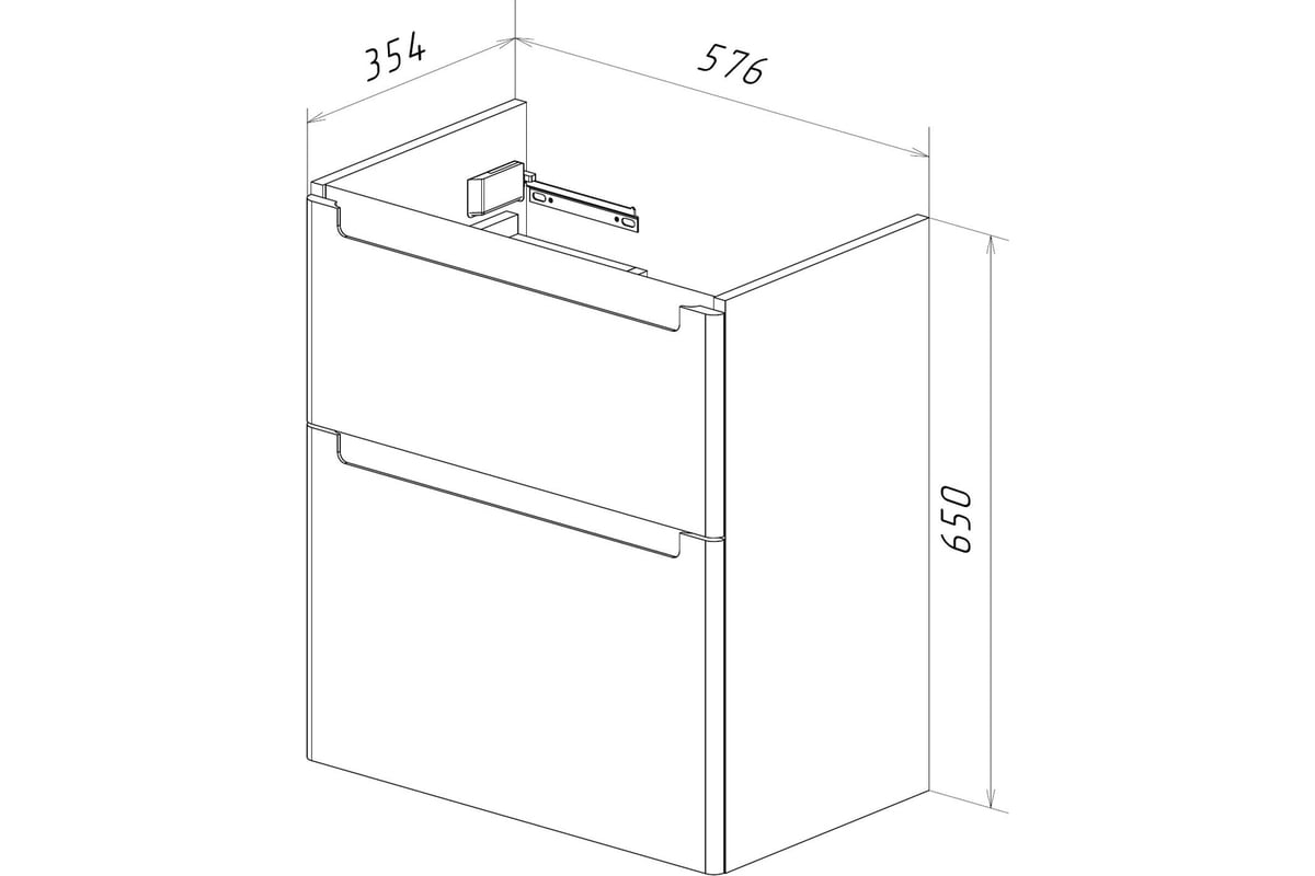 Технические характеристики Lemark BUNO 60 см под 1 раковину, подвесная/напольная, 2 ящика, цвет планки: Серый, цвет корпуса, фасада: Белый глянец