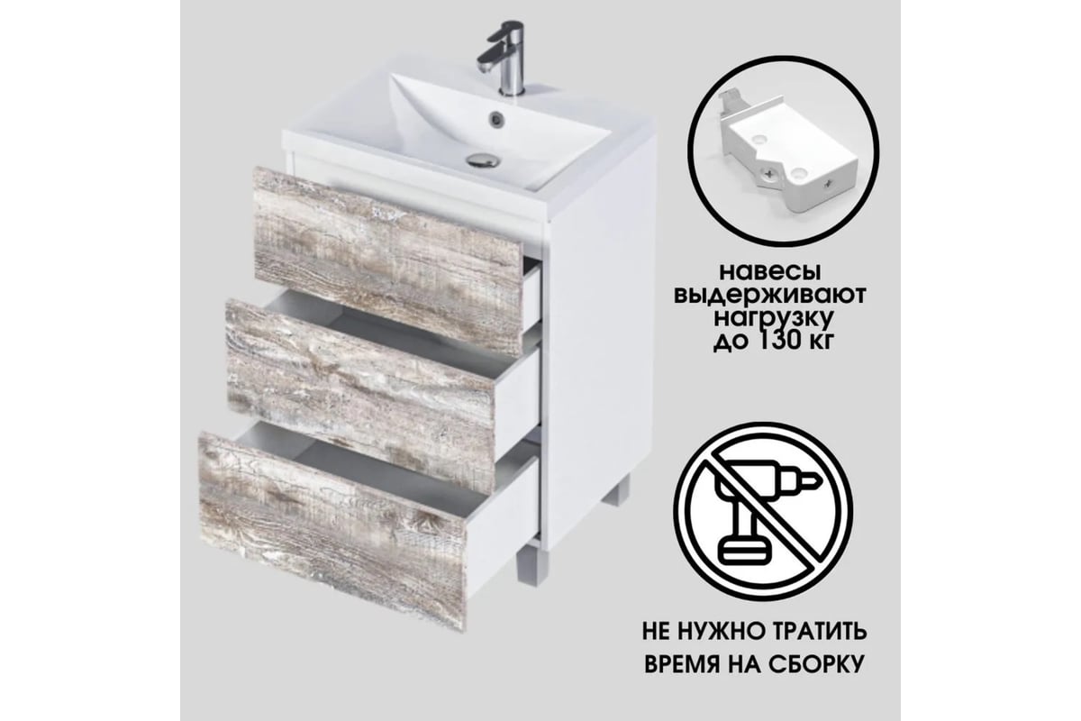 Сопутствующие товары для тумбы Marka One 70Н 3 ящика, Бетон Push, хром/квадрат